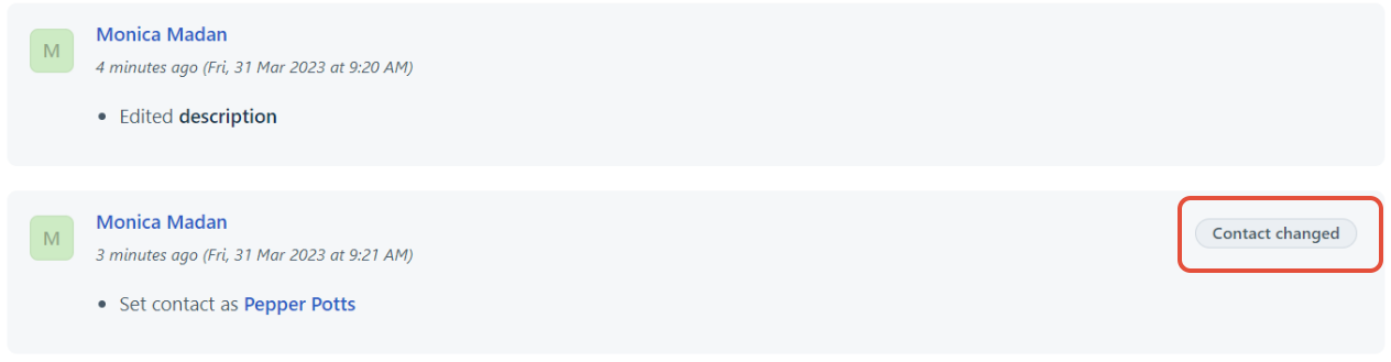 - System activities, such as executing automation rules, will show the rule name and include a hyperlink to the Admin page. For Agents/Supervisors, only the automation type and changes will be visible.
