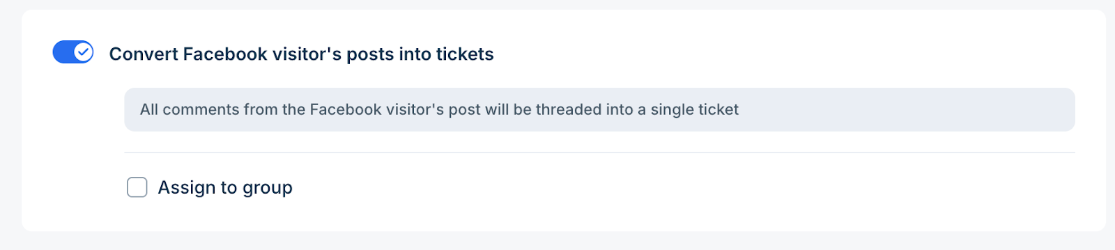 - When enabled, all comments on the visitor’s post are threaded into a single ticket, helping agents manage the entire conversation in one place.