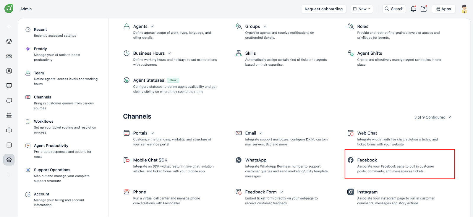 Follow the steps below to connect your Freshdesk with your Facebook page: