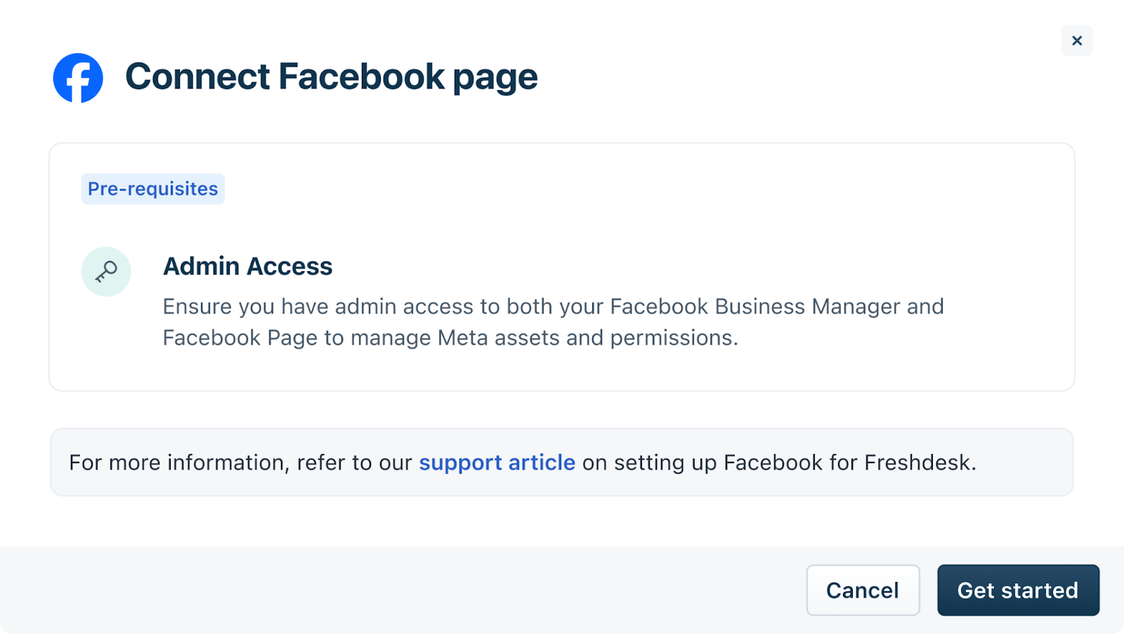 - In the Connect Facebook page pop-up that appears, click Get started.