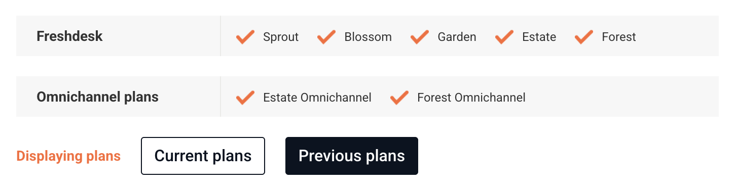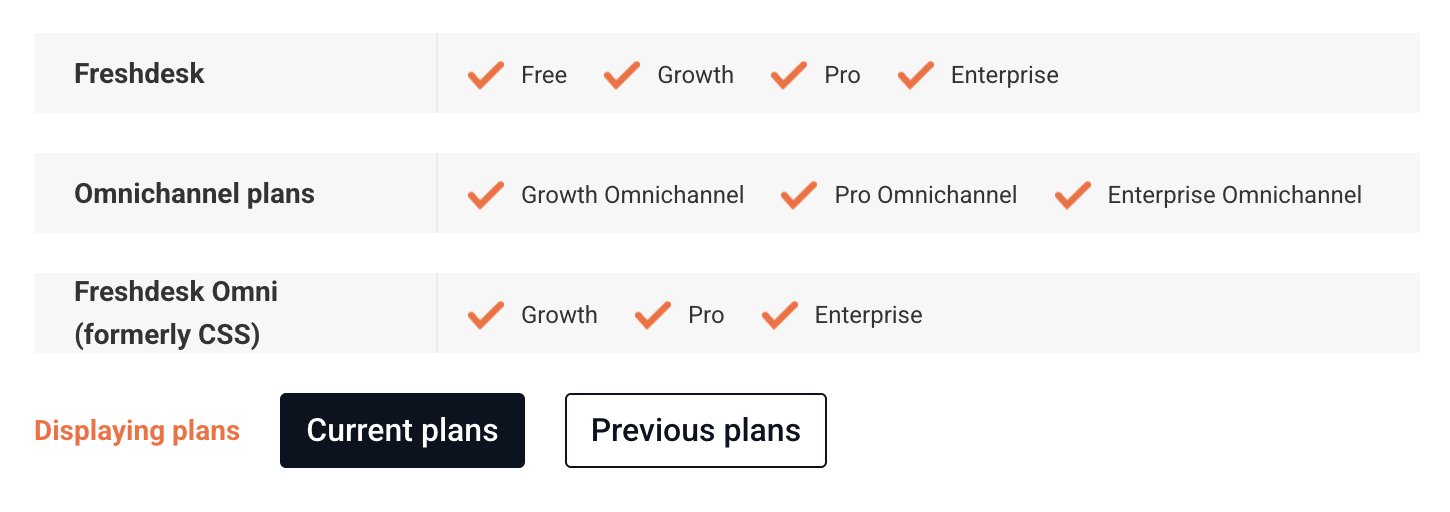 | Freshdesk Omni | Growth, Pro, and Enterprise. |