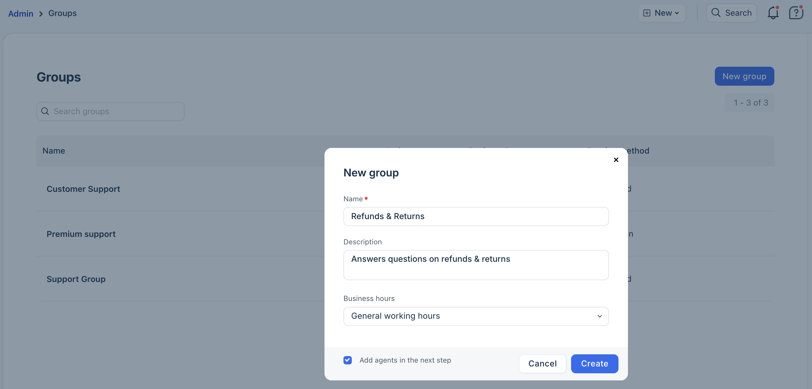 Groups let you organize agents into teams that share a common purpose or scope of work. This makes it easier to manage ticket assignments, apply consistent settings, and track performance at a team level.