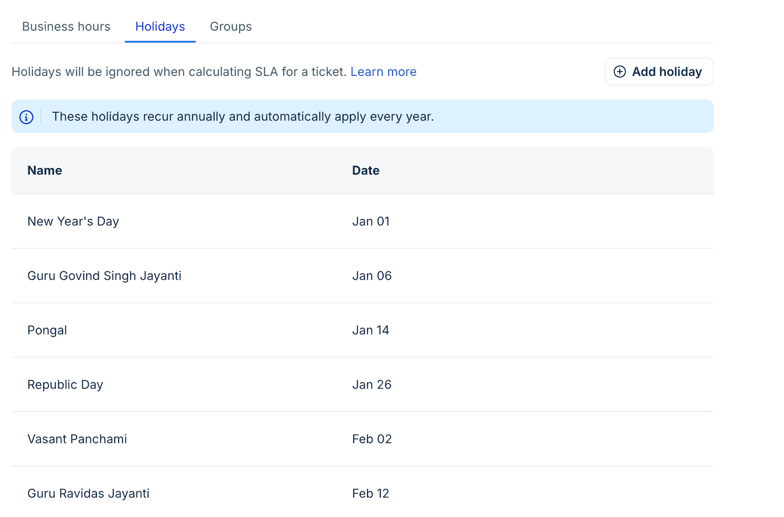 Business hours help you set clear expectations about when your team is available and ensure SLA deadlines are calculated based on actual working hours.