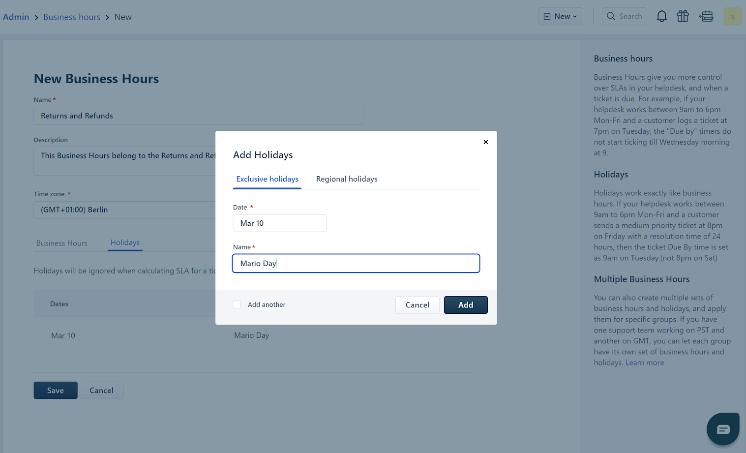 Omnichannel Holidays are dates within your Business Hours that your team is not working on. This includes dates like Public and Regional holidays like Independence Day, Good Friday, Diwali, and Eid.