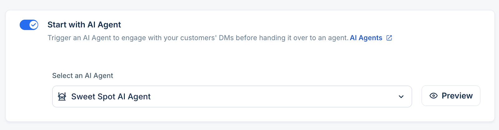 • Trigger an AI Agent to respond to the customer before handing over the conversation to a human agent.
