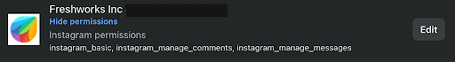 To check this, go to Facebook Page Settings > Page Setup > Advanced Messaging > You should see the Freshworks Inc app with Instagram Permissions