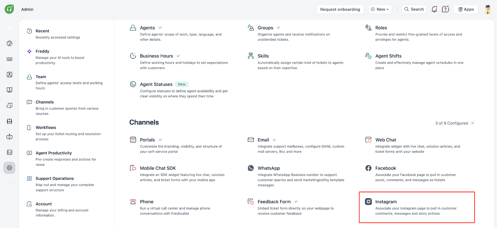 Here’s a quick video on connecting your Instagram account with Freshdesk or Freshdesk Omni: