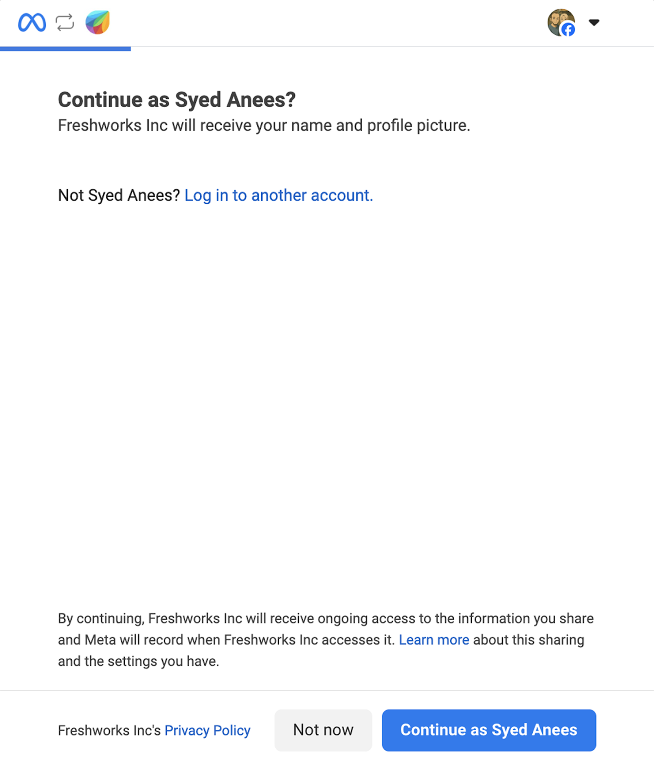 1. You will be redirected to your Facebook account. If you are already logged into your account, you can continue using the same.