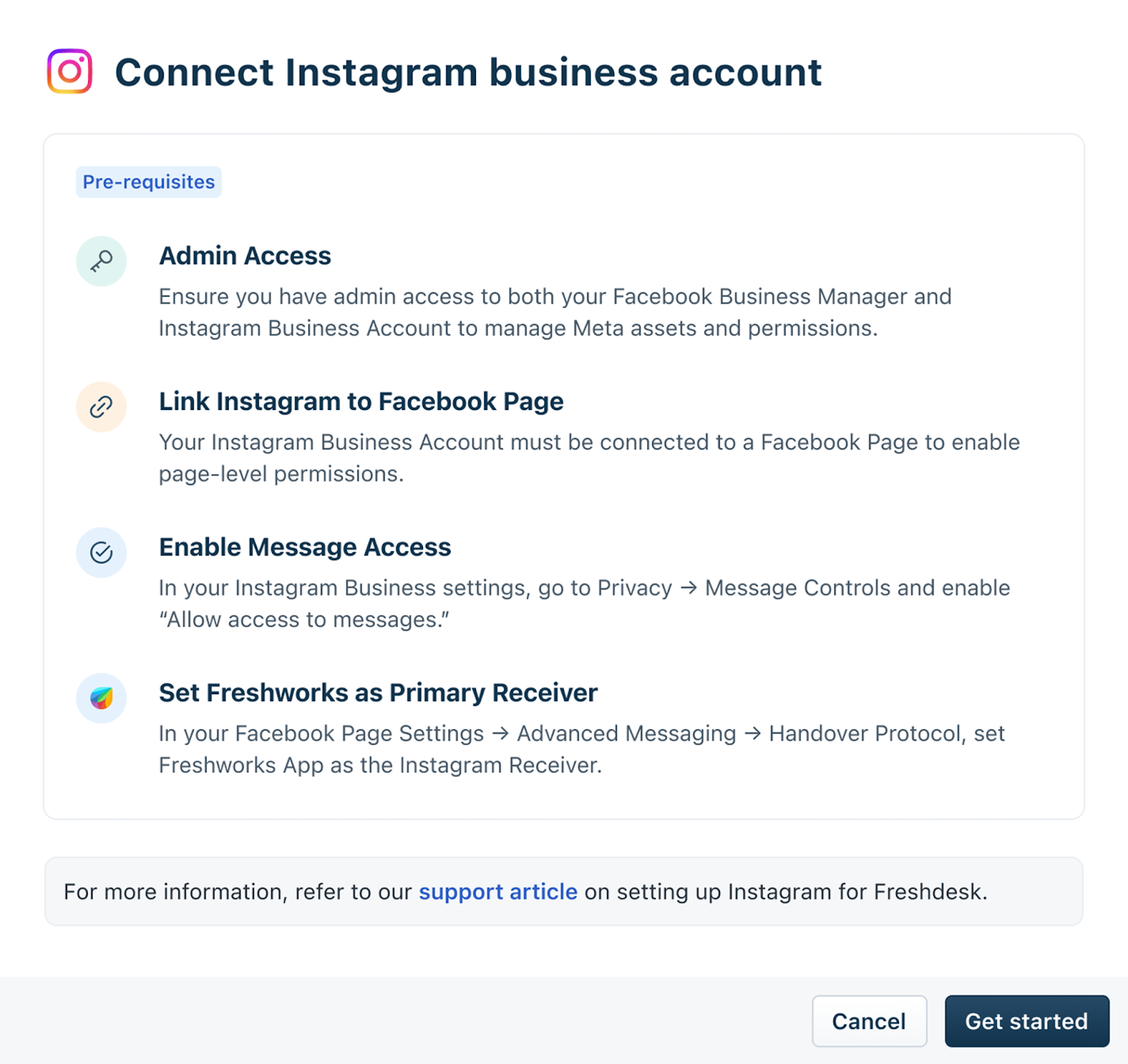 Once you complete the Instagram setup, check if Freshworks is the primary receiver for your Instagram messages on your Facebook page.