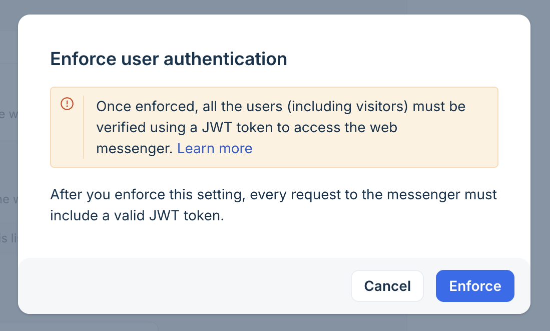 When you enable JWT authentication, only authenticated users can initiate conversations via your Web Widget.