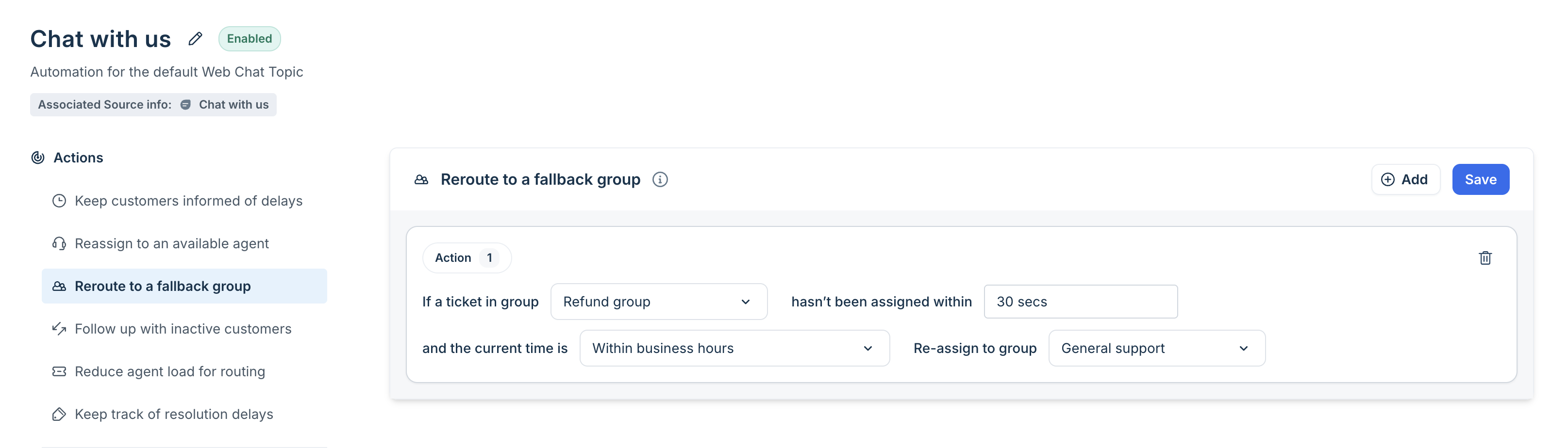 What you do: Select the fallback group the ticket should move to when it’s not assigned fast enough.