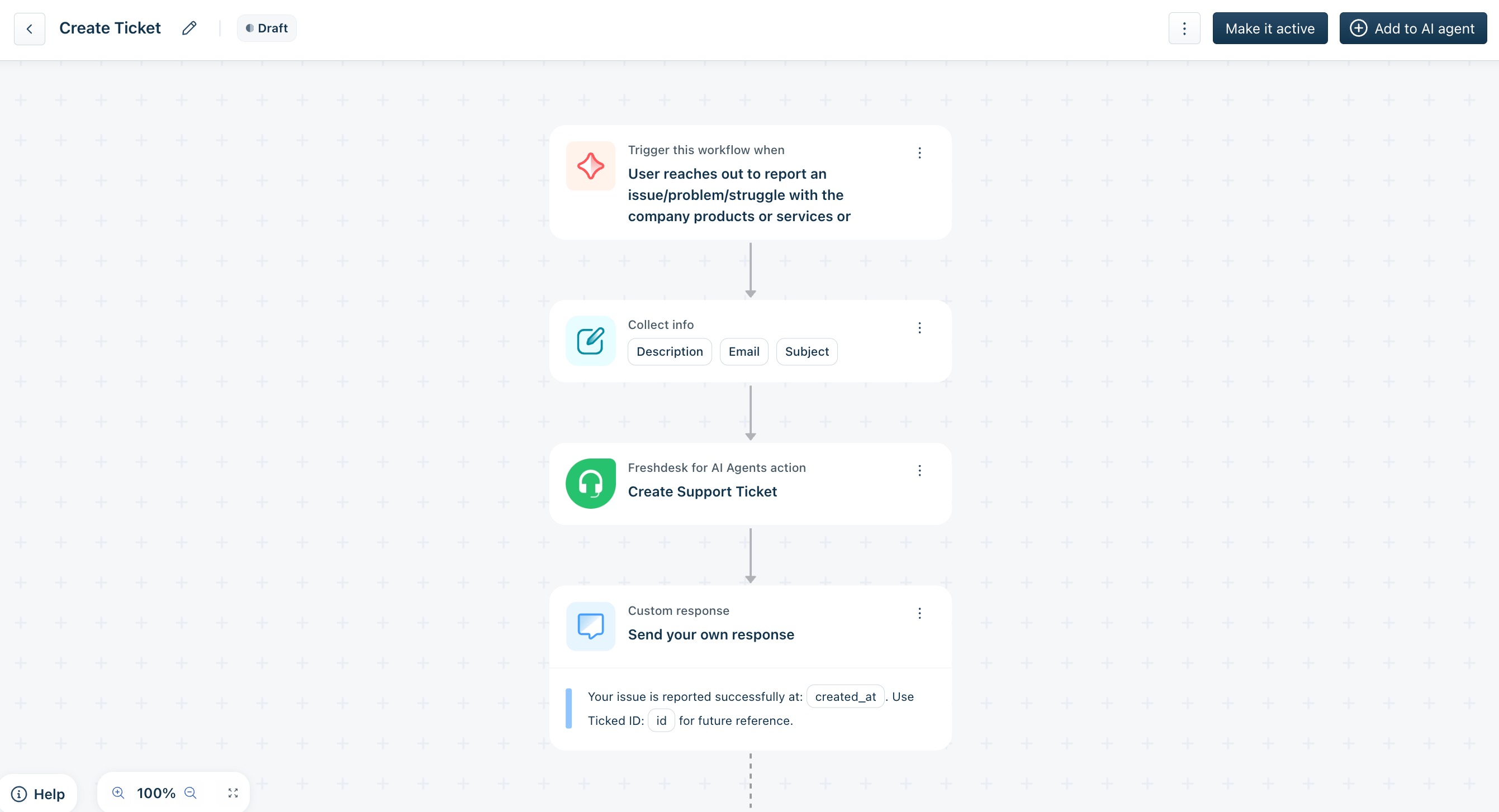 Workflows define how your AI Agent interacts with customers and systems — step by step.
