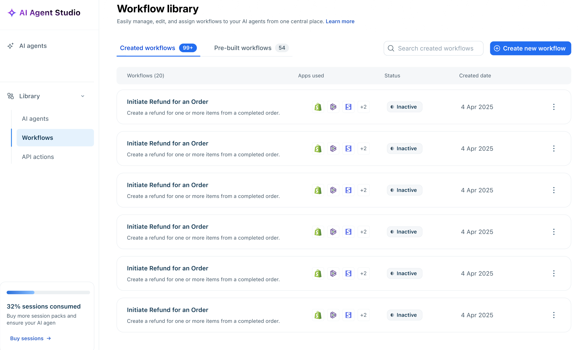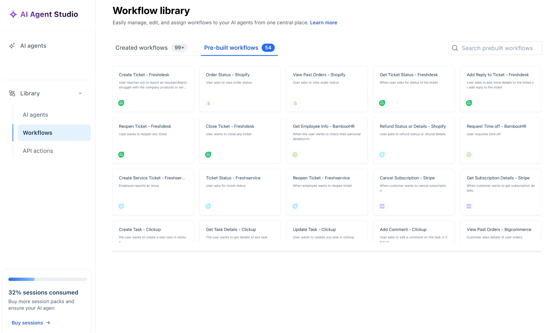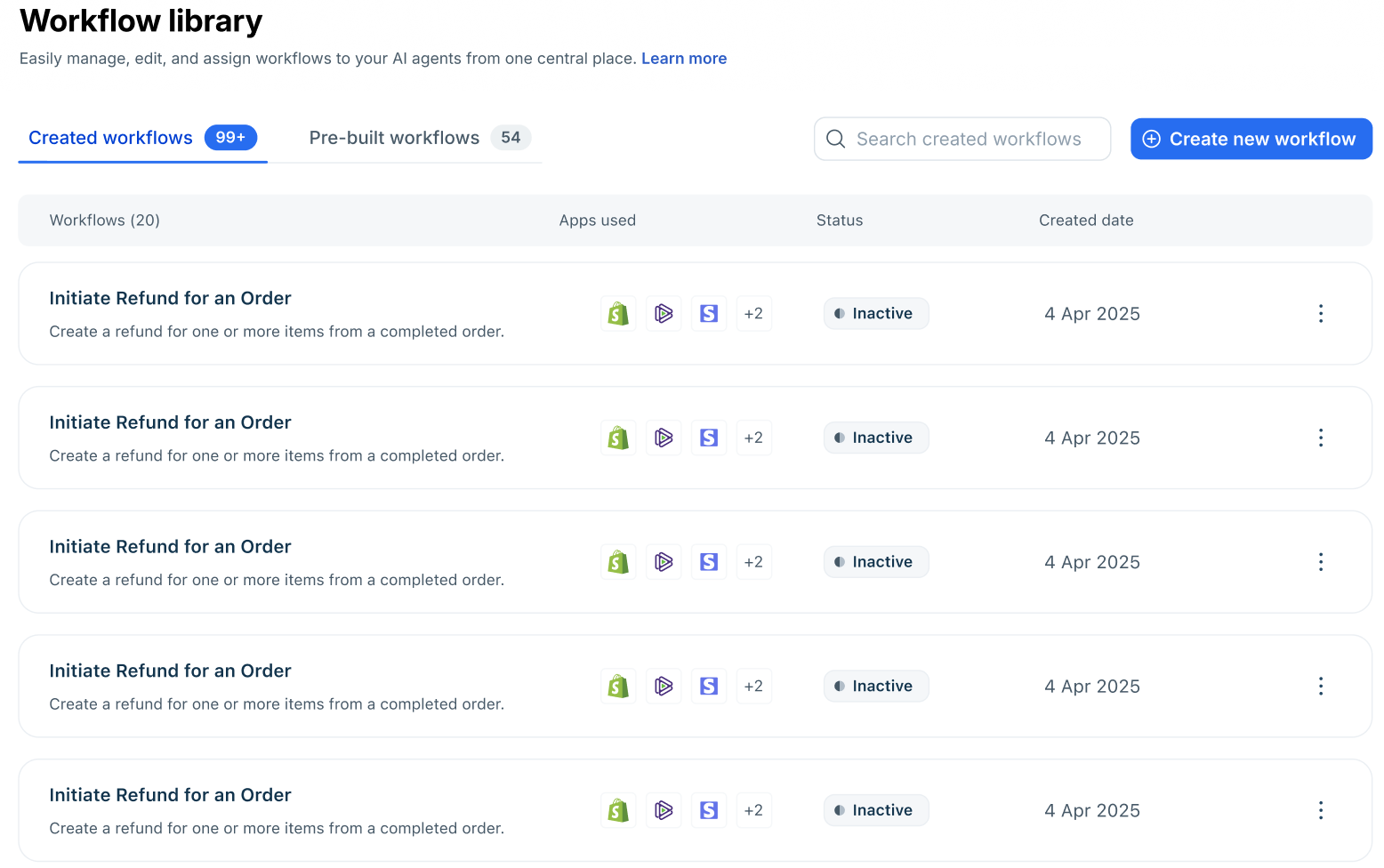- Workflow Library: Pre-built Workflows deliver instant value with ready templates for common scenarios like order status or refunds.