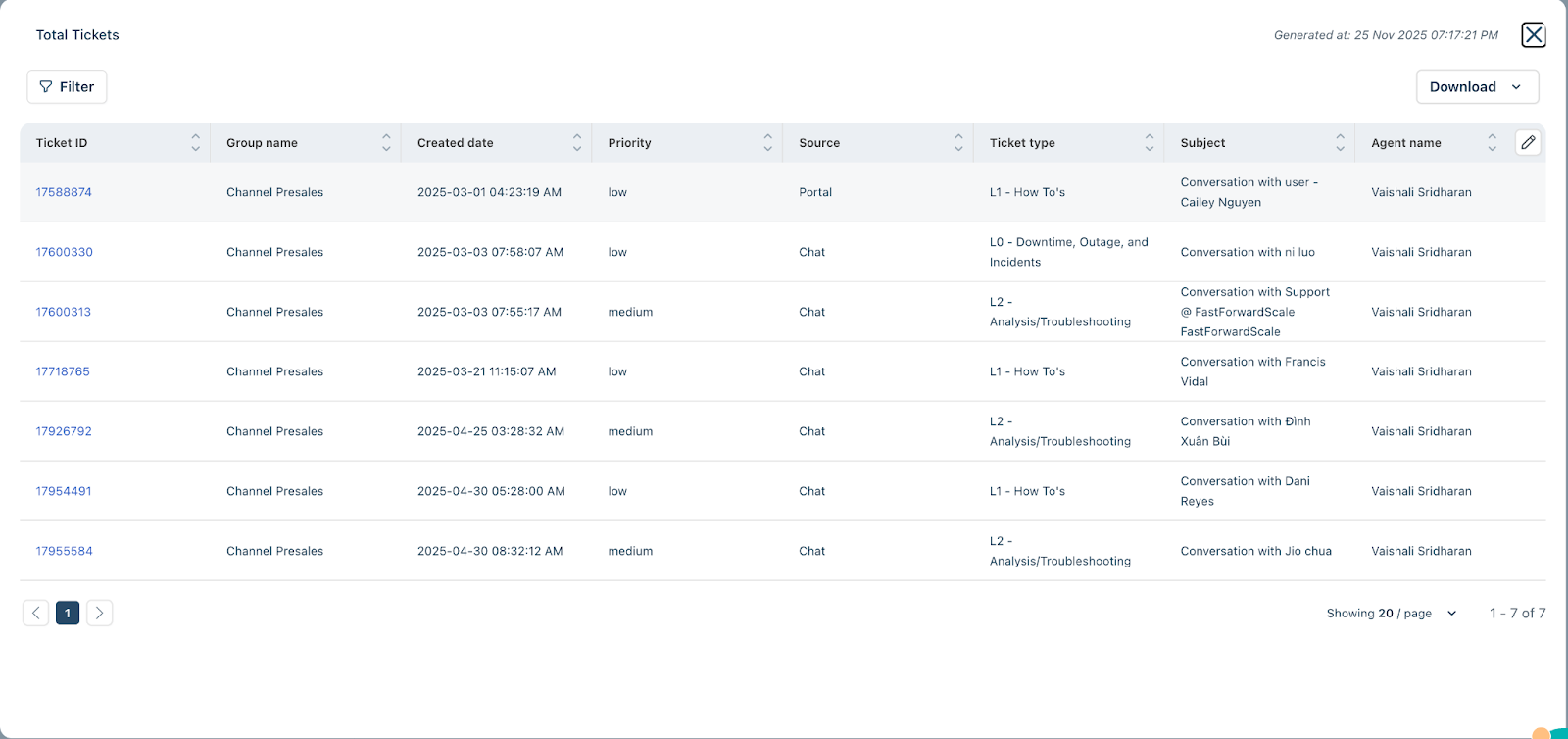 In the above example, the insight is about a surge in total ticket count compared to previous weeks.