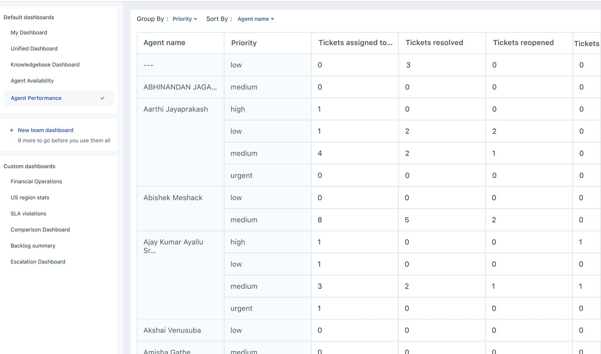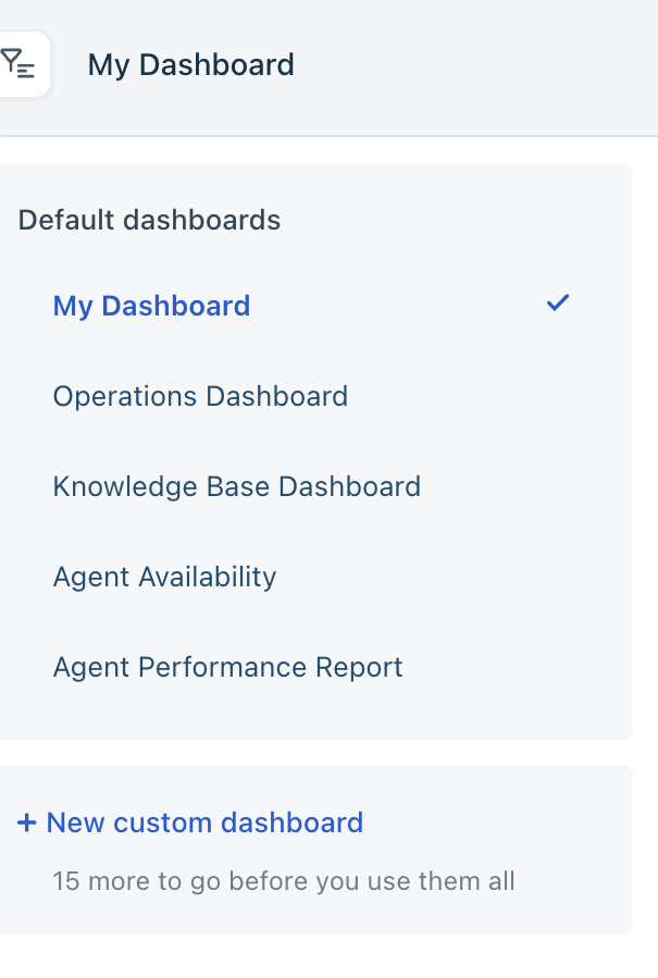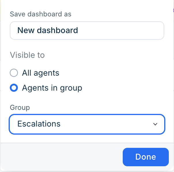 You can also create up to 15 custom dahsbords by clicking on custom dashboards. Choose from displaying the dashboard to all agents or to select users in a group