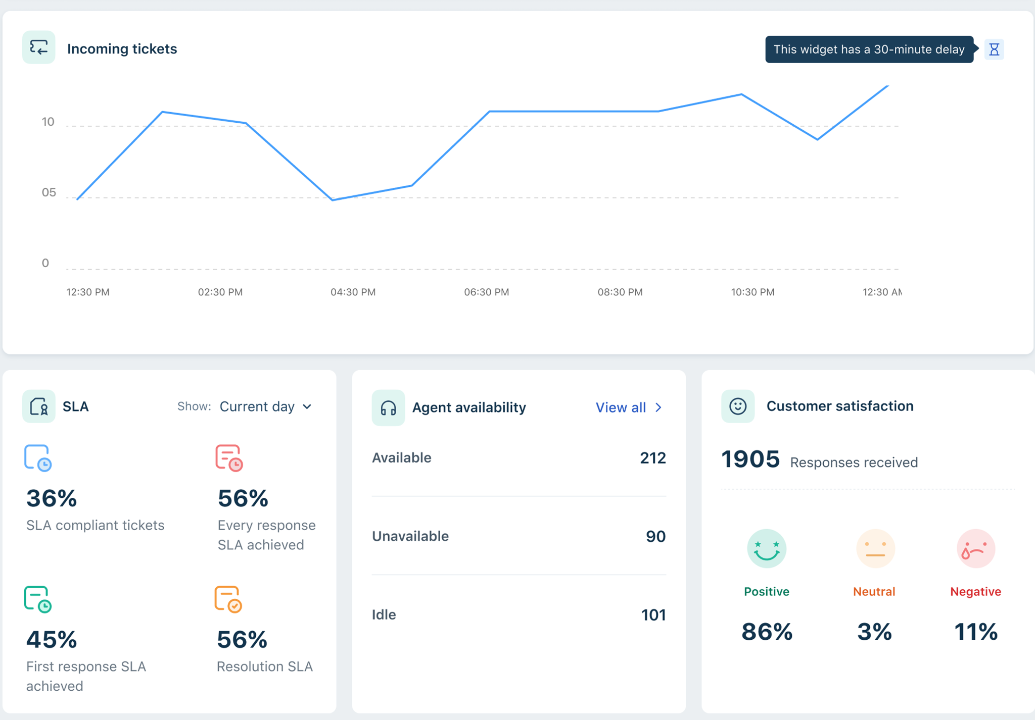 - Incoming Tickets – Tracks new tickets created throughout the day.