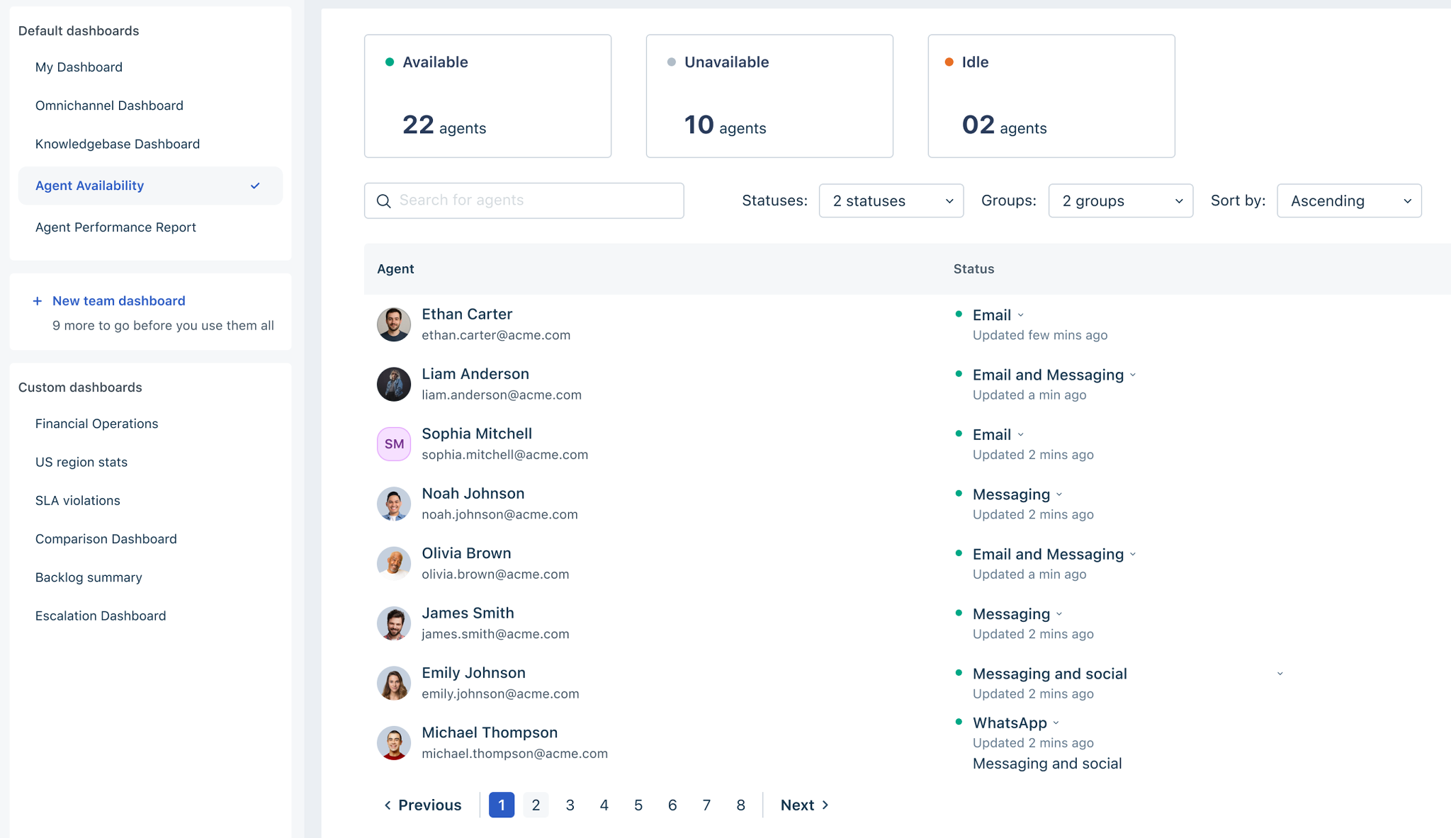 - Unavailable – Agents who are offline or unavailable.