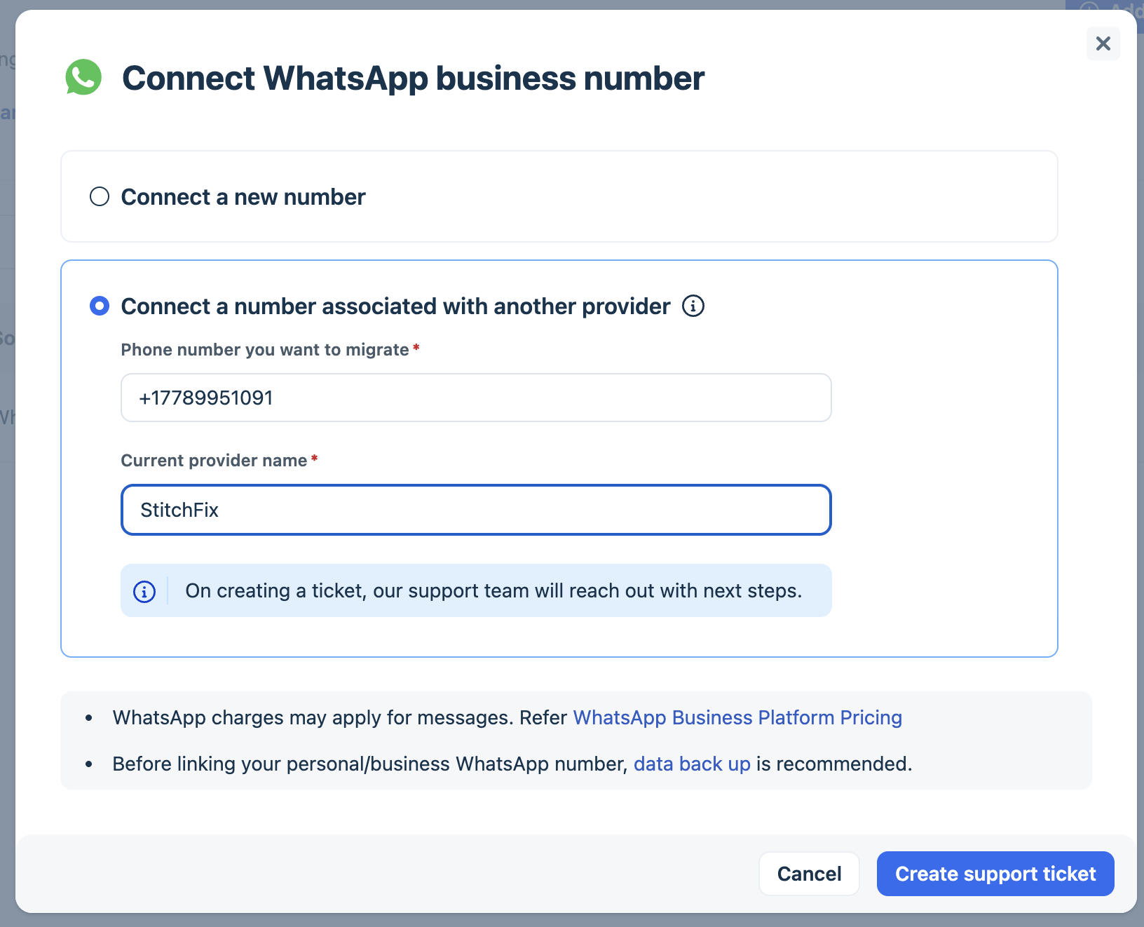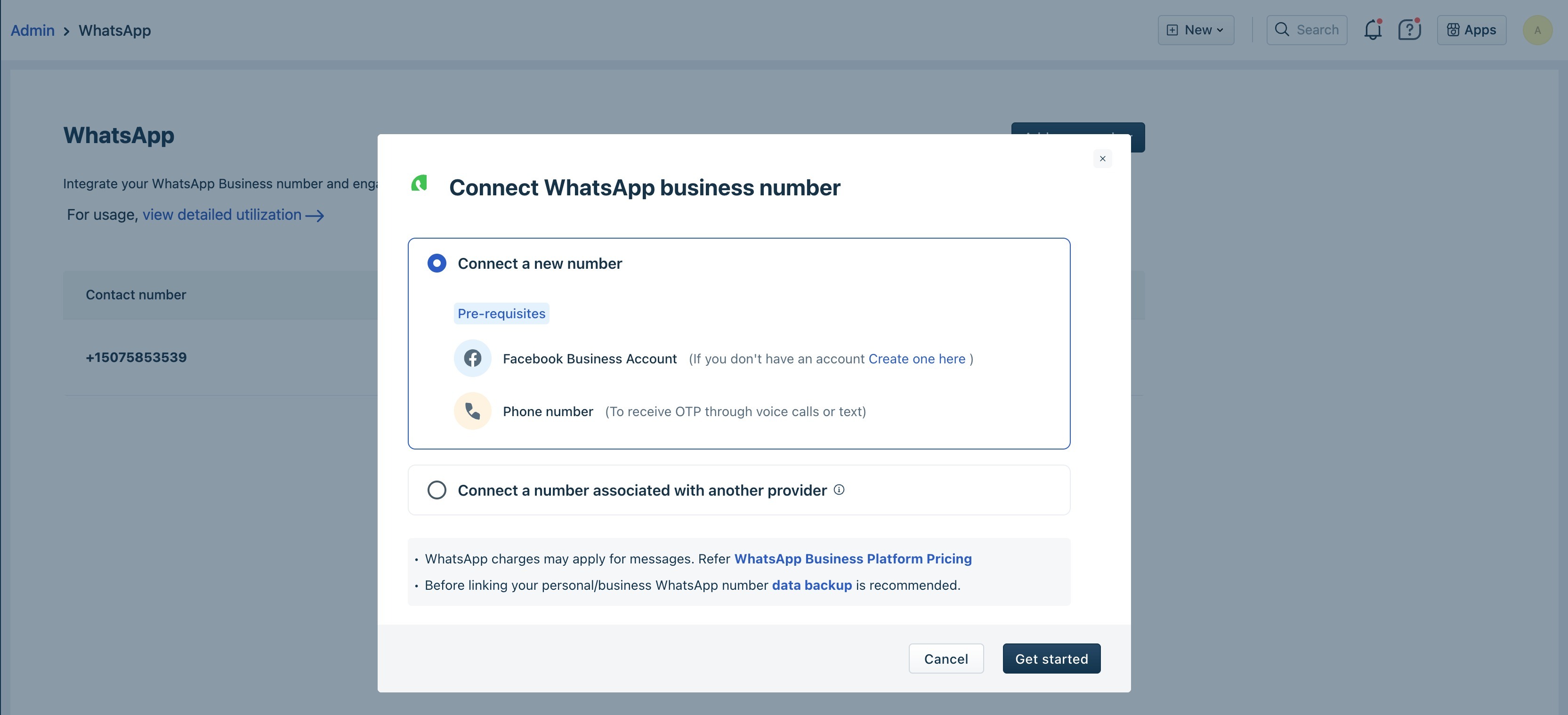Ensure you have Admin access to the Freshdesk/Freshworks Account where the number will be hosted (the destination WABA). - Plan eligibility