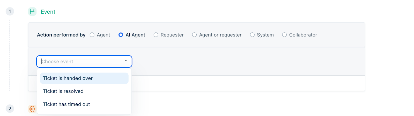 - Ticket is handed over - Set conditions and actions when the AI Agent hands over a ticket to a human agent.