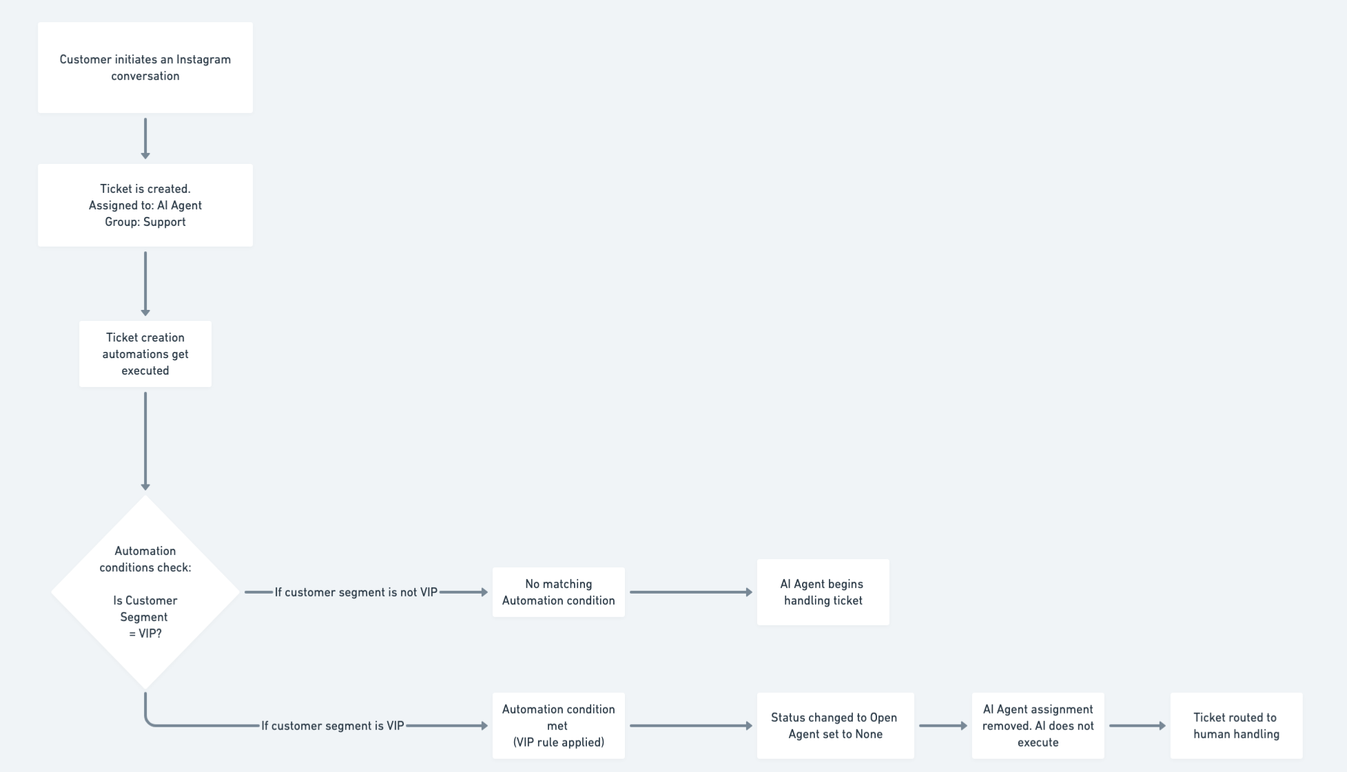 | Ticket creation automations | Evaluated before AI Agent execution. If an automation updates the ticket and removes the AI assignment, the AI Agent will not execute. |